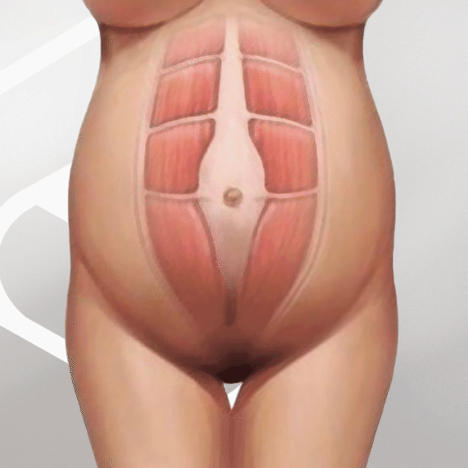 Under en graviditet är rektusdiastasen tydligast i den sista tredjedelen av graviditeten.